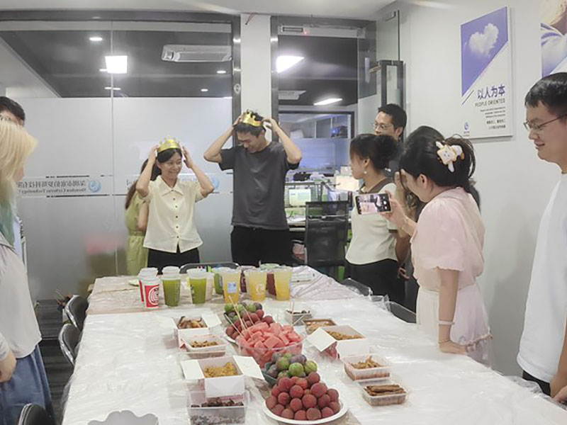 此刻,會議室里彩帶飄揚,蛋糕上的燭光搖曳。大家圍坐在一起,分享著甜蜜的蛋糕,美食、冷飲、水果等,講述著工作和生活中的趣事。這不僅是一場生日聚會,更是塞伯羅斯大家庭凝聚力的生動體現。我們在這里共同奮斗,也在這里共同成長,每一個生日的祝福,都是對彼此辛勤付出的認可與鼓勵。