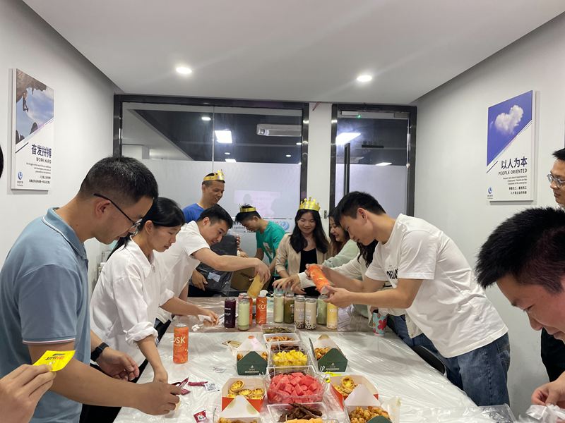 活動現場,行政團隊精心布置了長桌,奶茶的香醇、蛋糕的甜美與炸雞的酥脆交織成歡樂的旋律。同事們圍坐一堂,為壽星們送上真摯祝福,歡聲笑語中傳遞著團隊的溫暖與凝聚力。這場慶典不僅是對壽星的祝福,更是塞伯羅斯(Cyberoce)科技“以人為本、科技賦能”理念的生動體現。